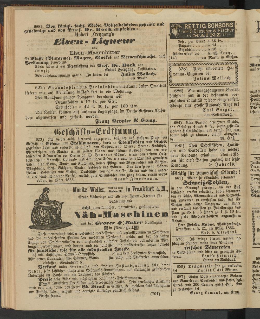 Anzeigeblatt für die Provinzialhauptstadt Gießen. 1840-1867