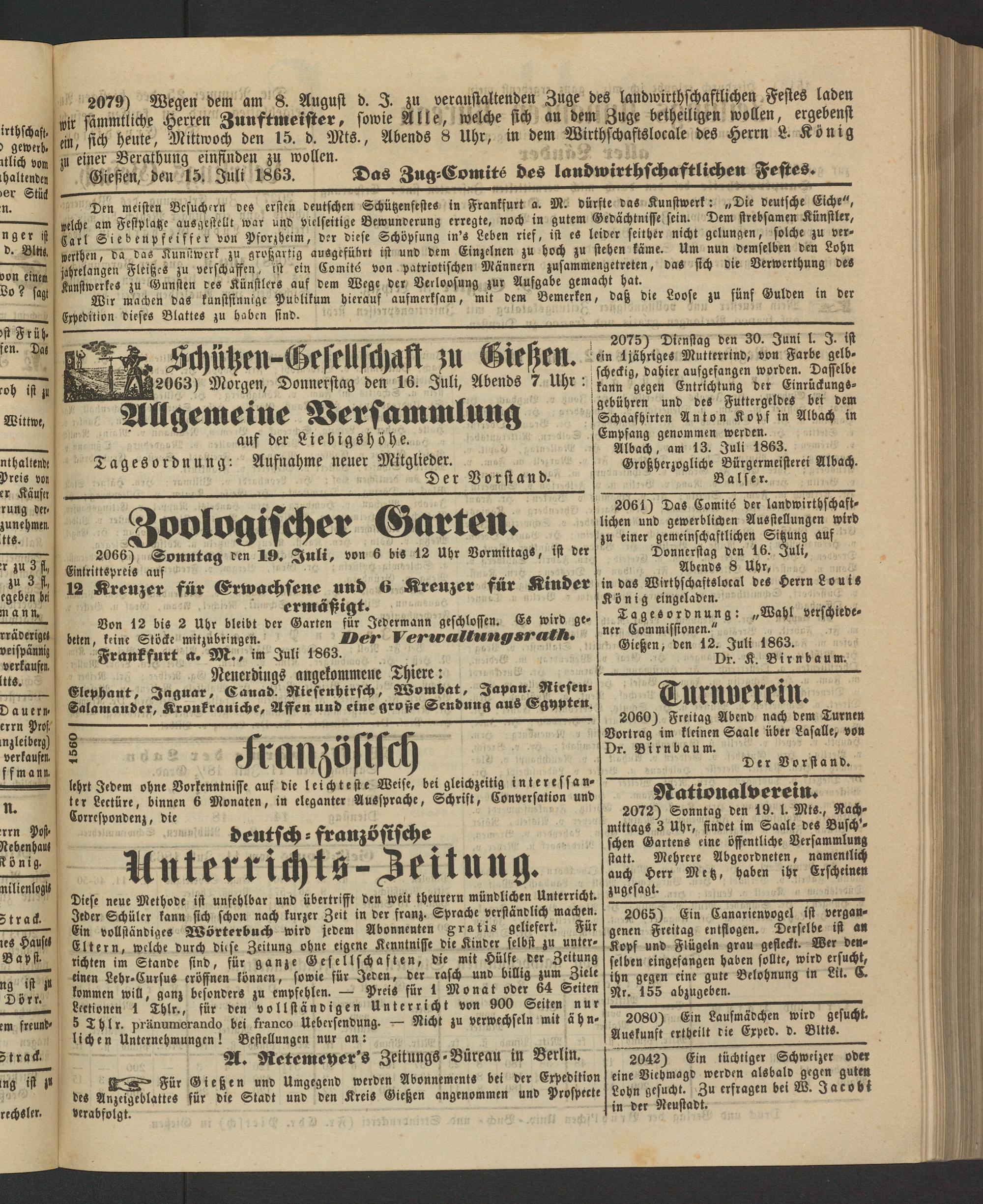 Anzeigeblatt für die Provinzialhauptstadt Gießen. 1840-1867