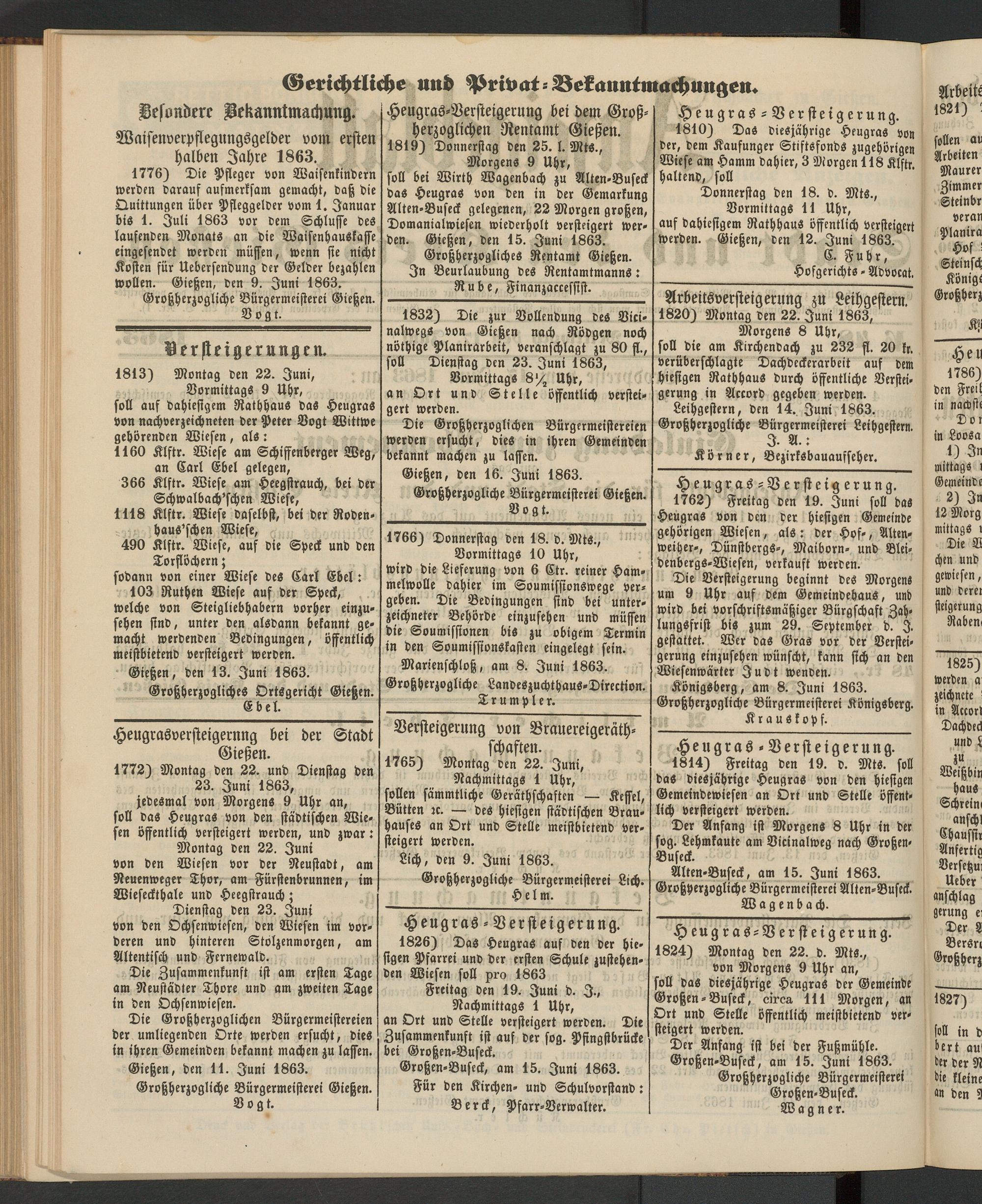 Anzeigeblatt für die Provinzialhauptstadt Gießen. 1840-1867