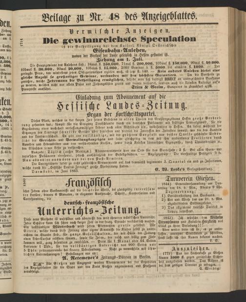 Anzeigeblatt für die Provinzialhauptstadt Gießen. 1840-1867