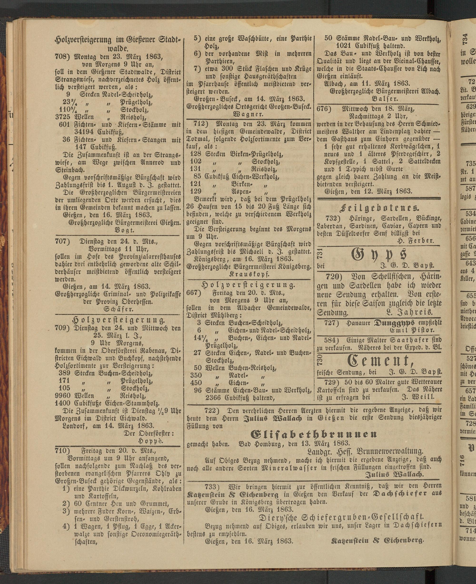 Anzeigeblatt für die Provinzialhauptstadt Gießen. 1840-1867
