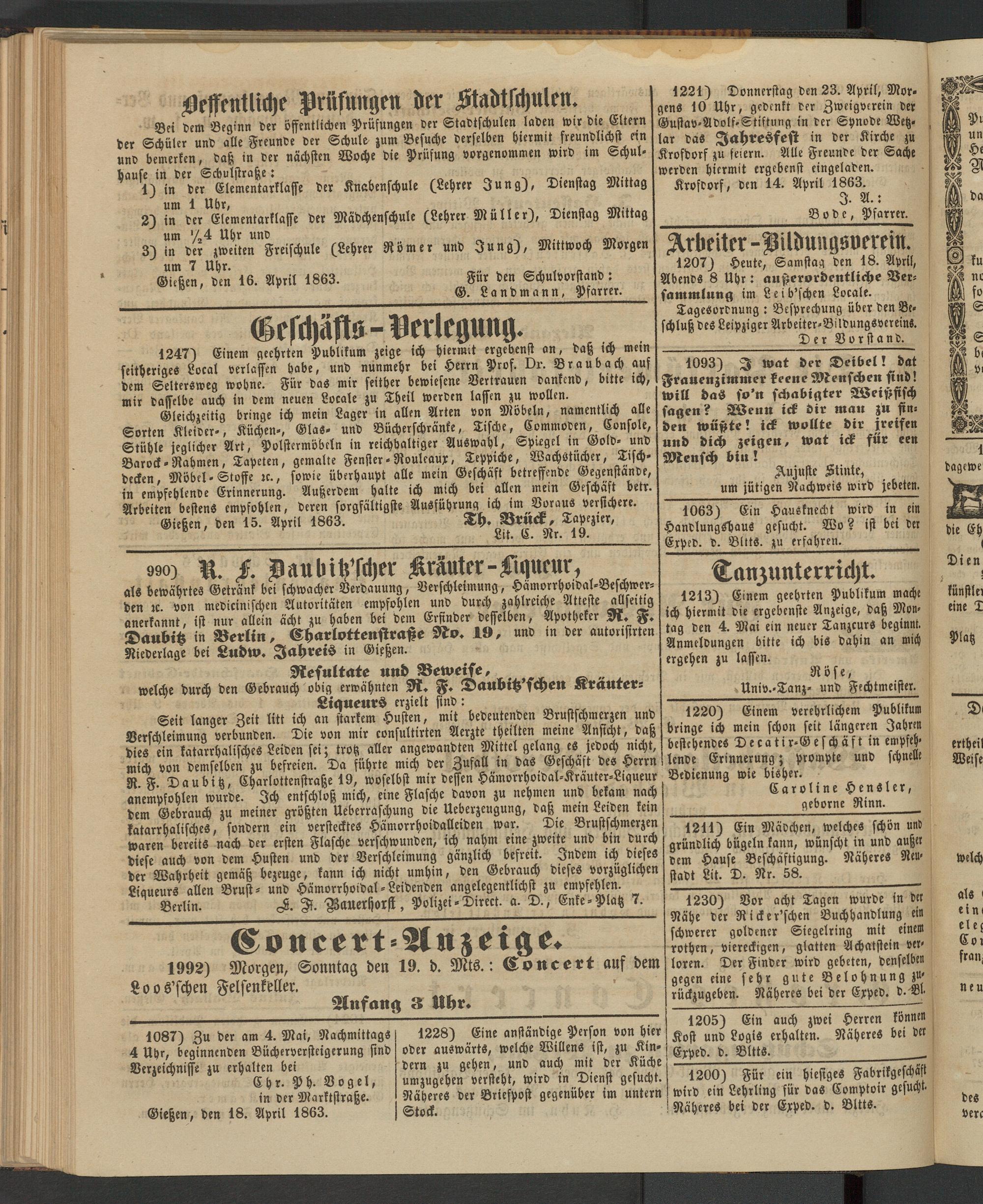 Anzeigeblatt für die Provinzialhauptstadt Gießen. 1840-1867