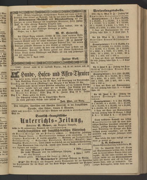 Anzeigeblatt für die Provinzialhauptstadt Gießen. 1840-1867