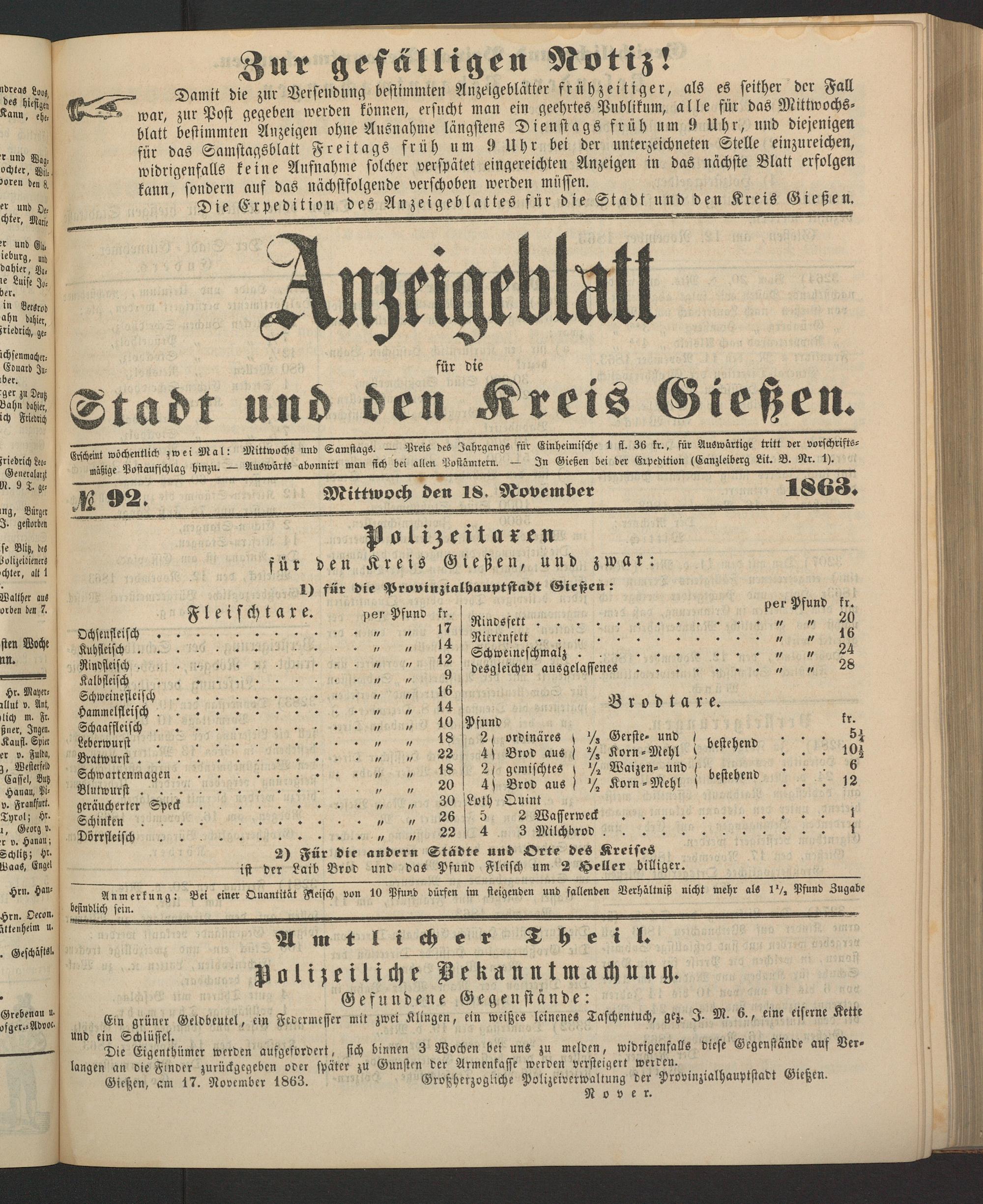 Anzeigeblatt für die Provinzialhauptstadt Gießen. 1840-1867