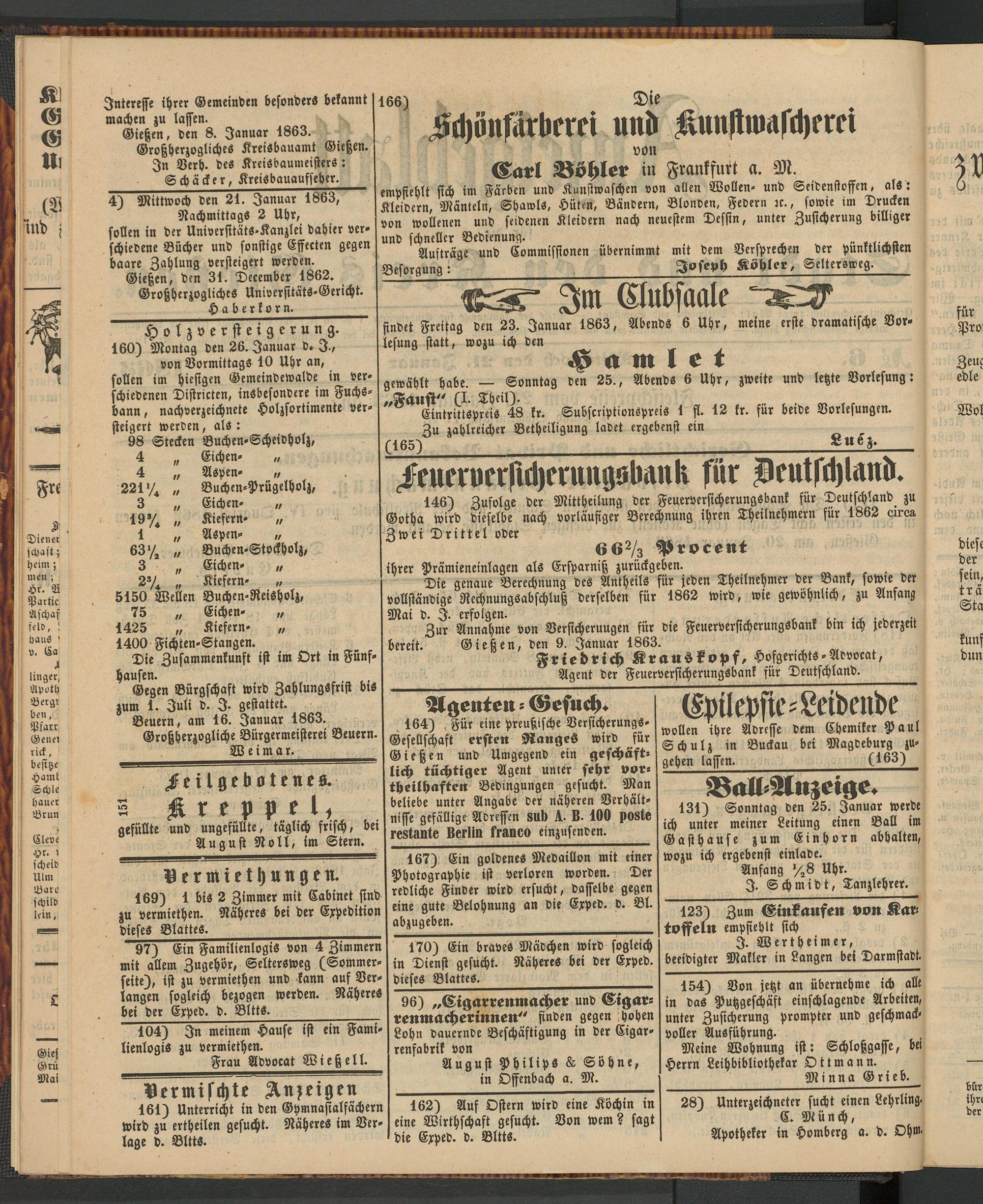 Anzeigeblatt für die Provinzialhauptstadt Gießen. 1840-1867
