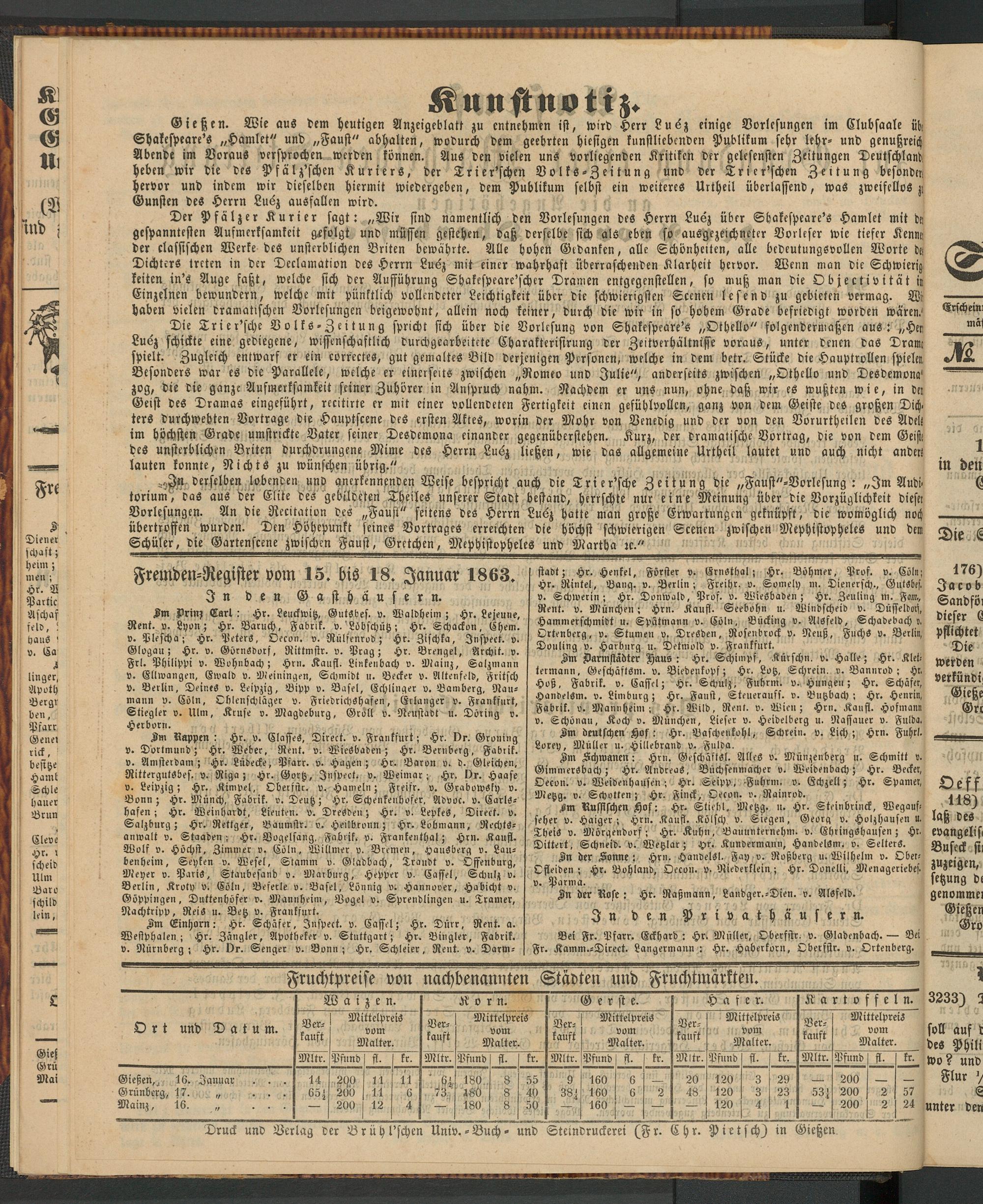 Anzeigeblatt für die Provinzialhauptstadt Gießen. 1840-1867
