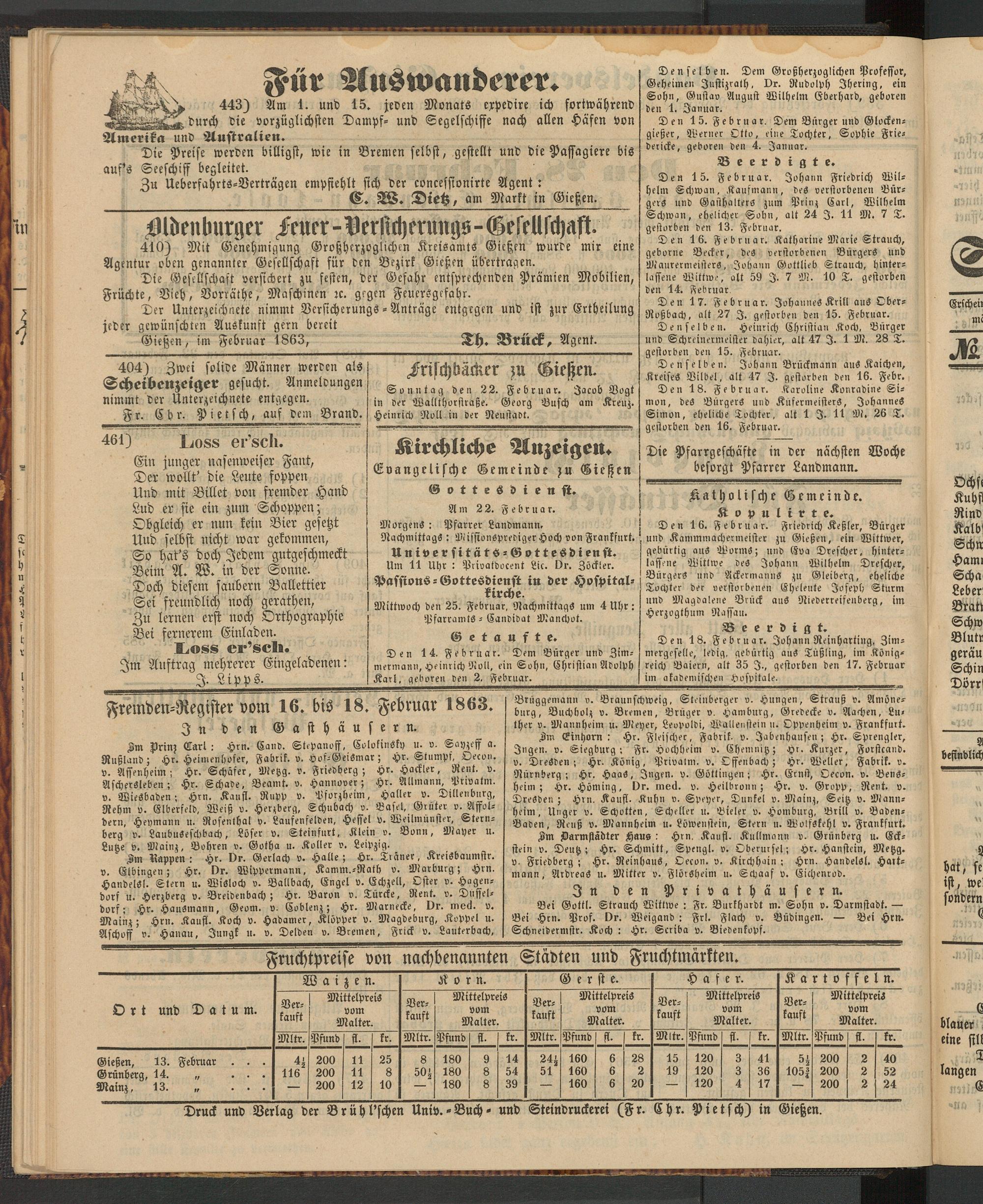Anzeigeblatt für die Provinzialhauptstadt Gießen. 1840-1867