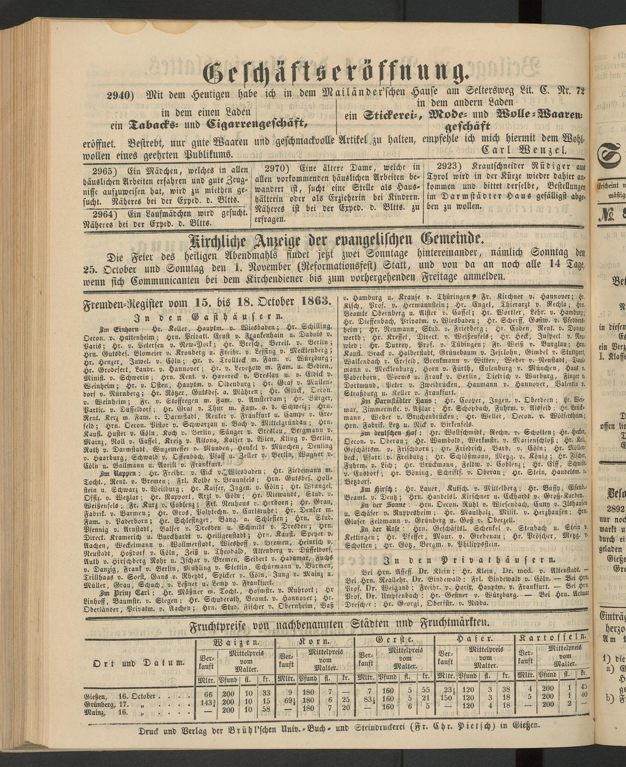 Anzeigeblatt für die Provinzialhauptstadt Gießen. 1840-1867
