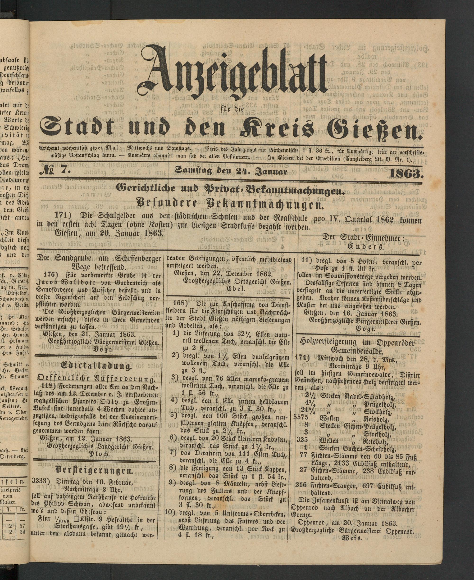 Anzeigeblatt für die Provinzialhauptstadt Gießen. 1840-1867
