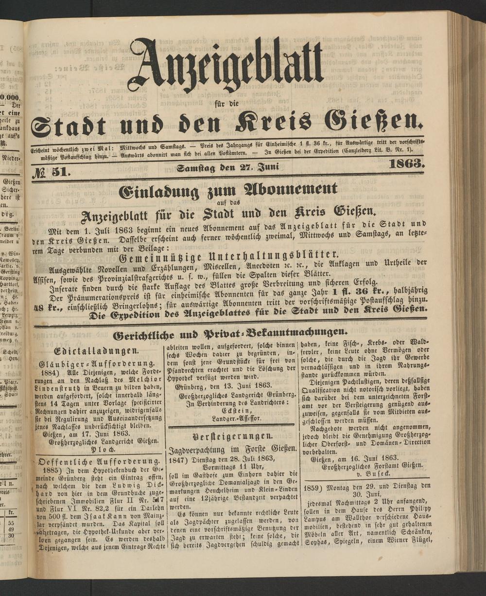 Anzeigeblatt für die Provinzialhauptstadt Gießen. 1840-1867