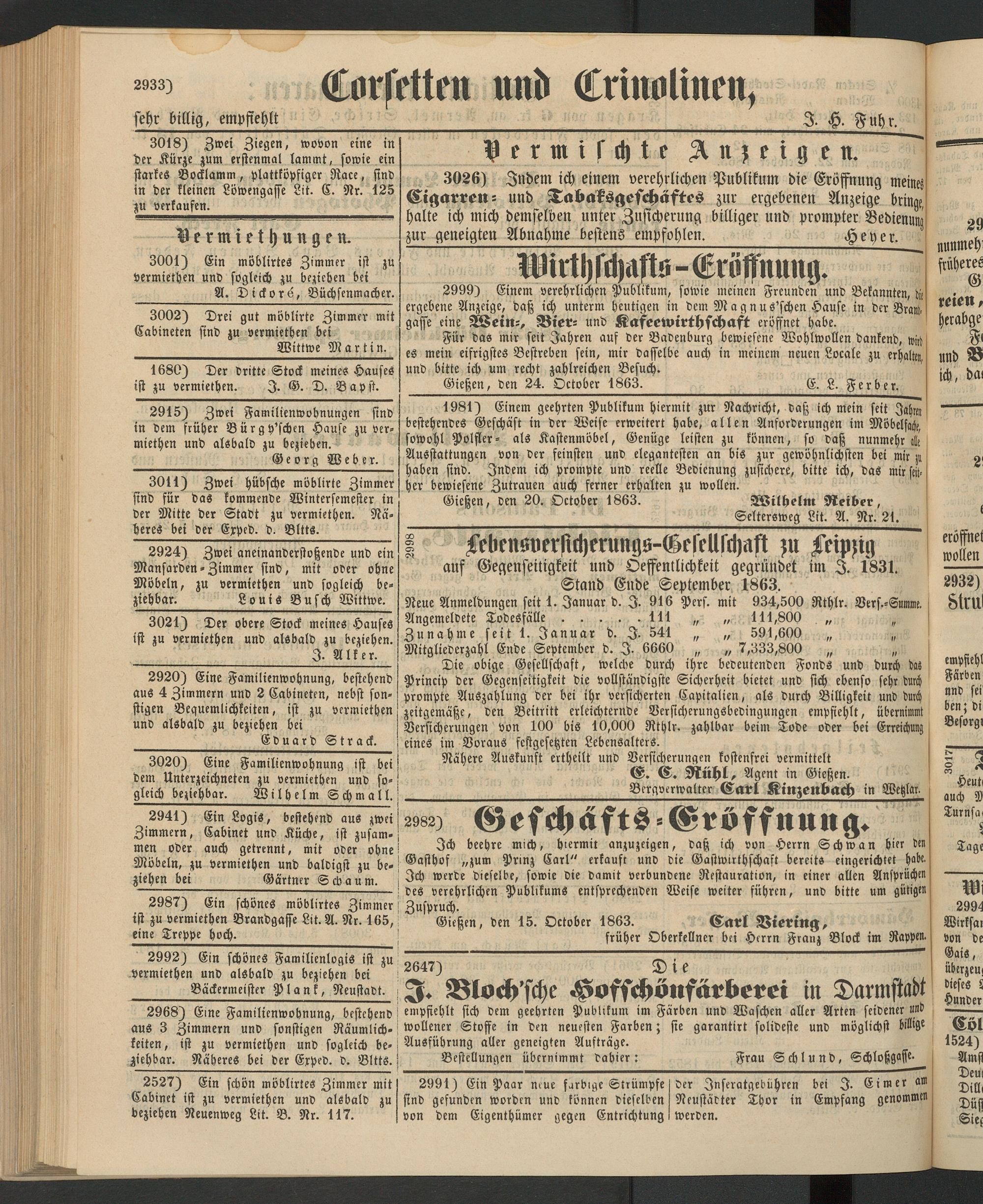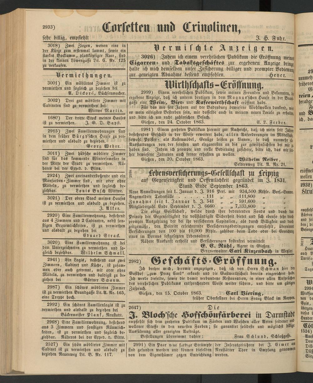 Anzeigeblatt für die Provinzialhauptstadt Gießen. 1840-1867