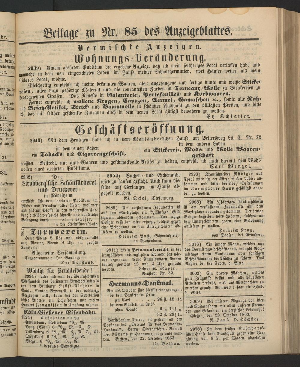 Anzeigeblatt für die Provinzialhauptstadt Gießen. 1840-1867