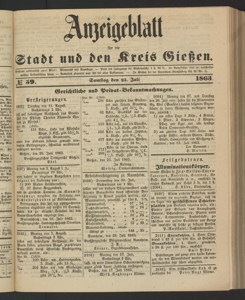 Anzeigeblatt für die Provinzialhauptstadt Gießen. 1840-1867