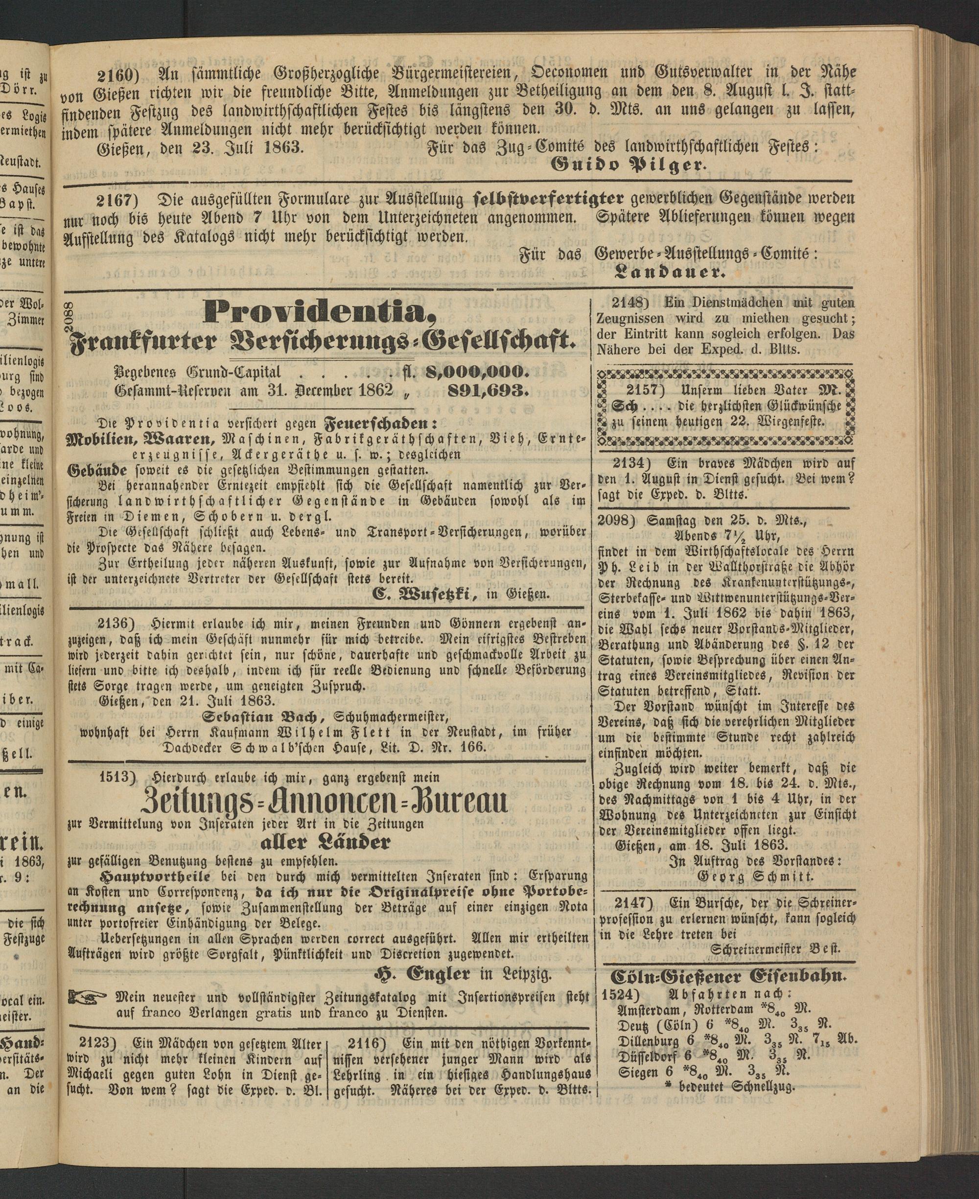 Anzeigeblatt für die Provinzialhauptstadt Gießen. 1840-1867