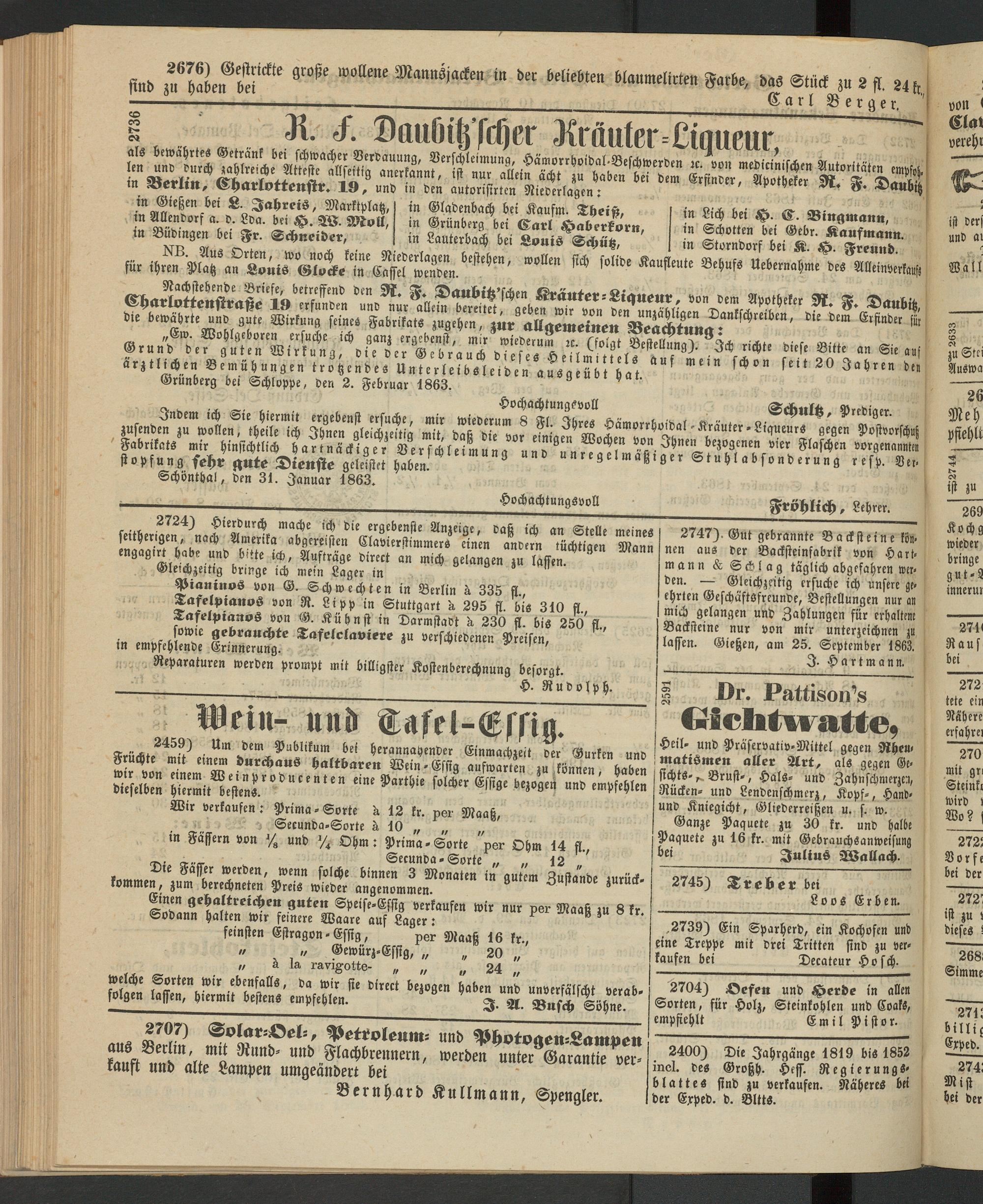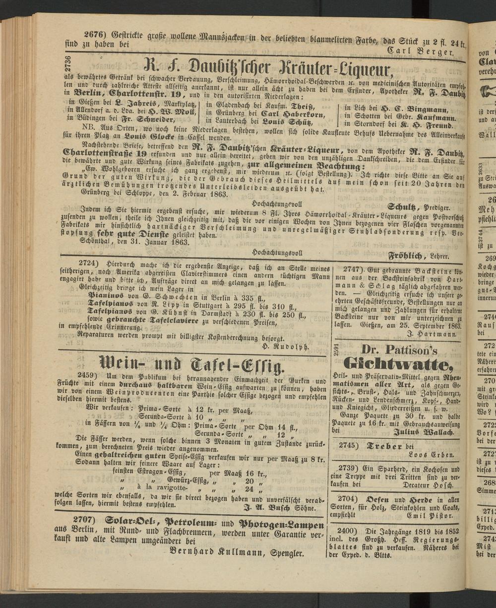 Anzeigeblatt für die Provinzialhauptstadt Gießen. 1840-1867