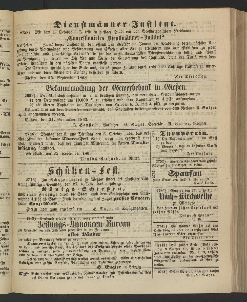 Anzeigeblatt für die Provinzialhauptstadt Gießen. 1840-1867