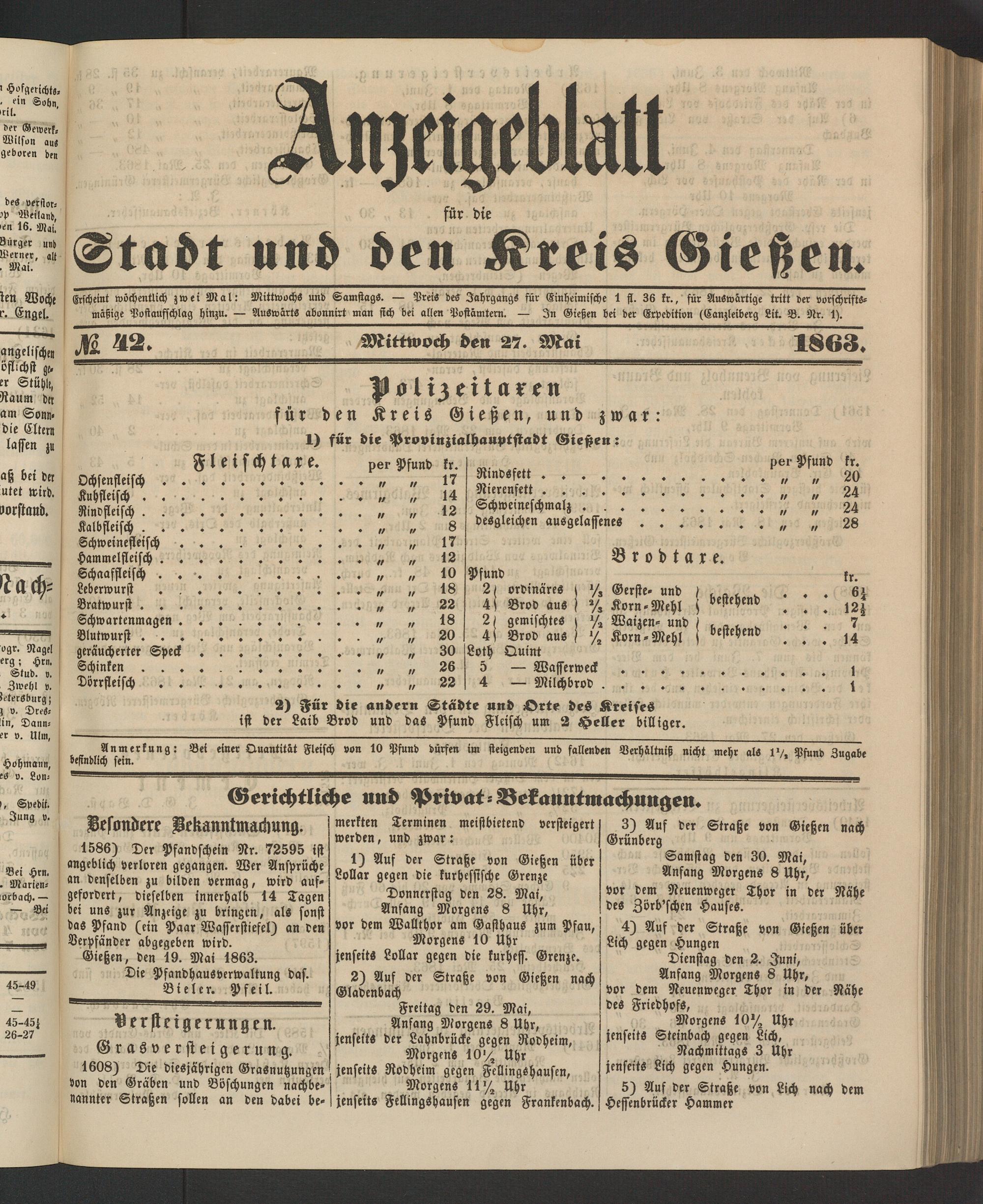 Anzeigeblatt für die Provinzialhauptstadt Gießen. 1840-1867