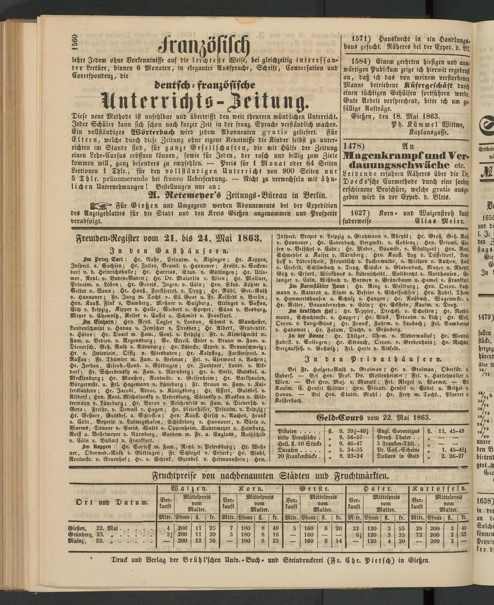 Anzeigeblatt für die Provinzialhauptstadt Gießen. 1840-1867