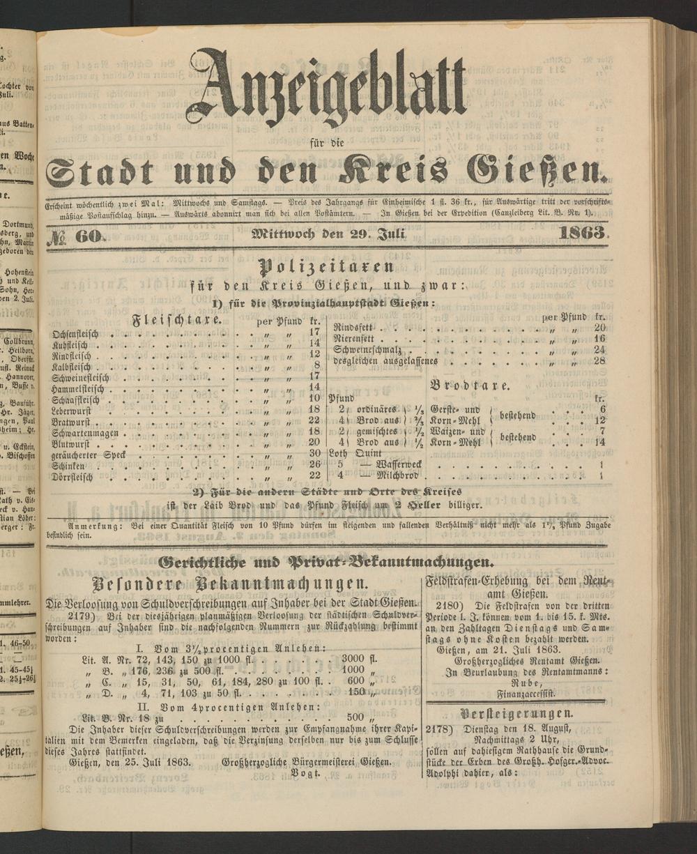 Anzeigeblatt für die Provinzialhauptstadt Gießen. 1840-1867