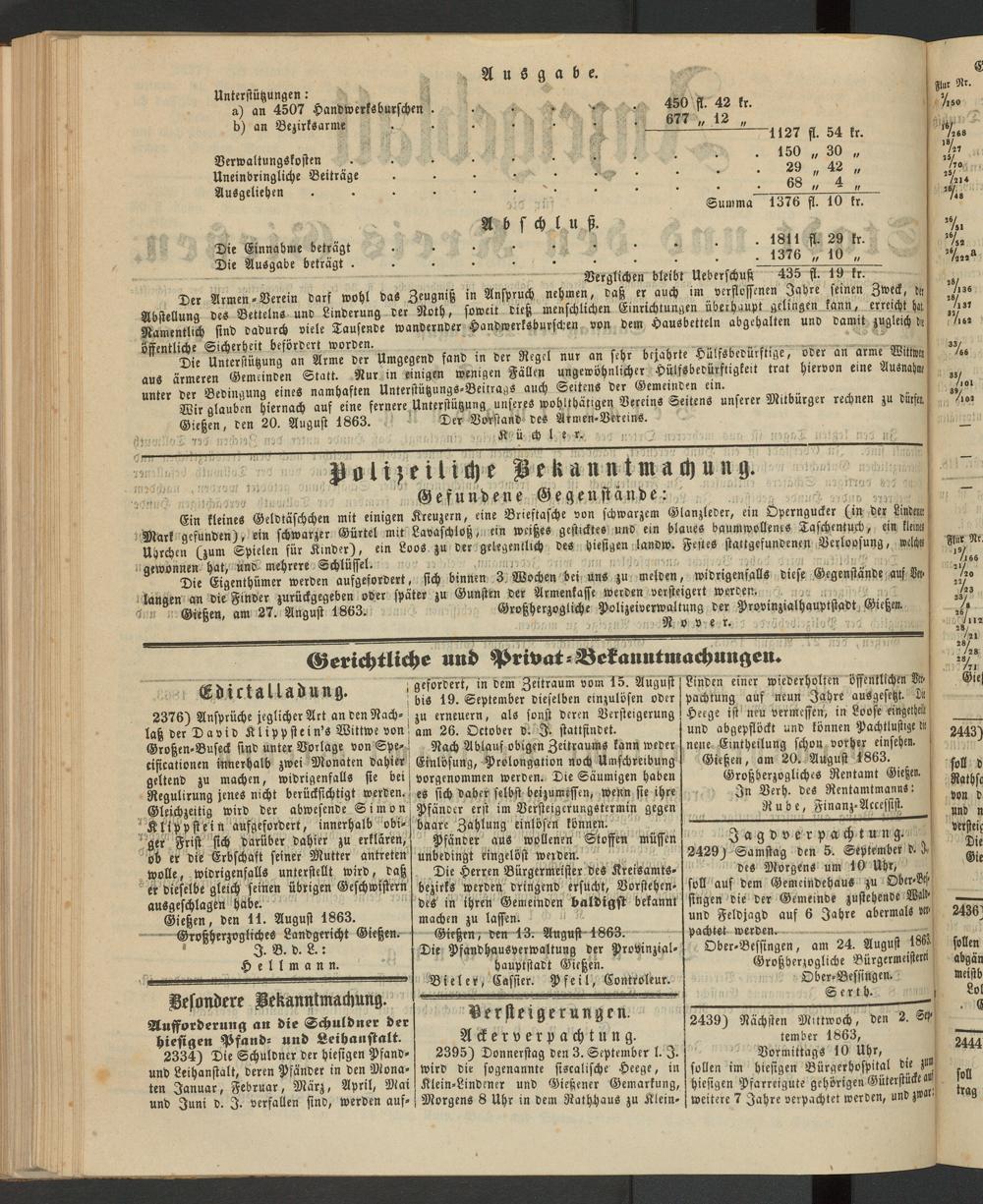 Anzeigeblatt für die Provinzialhauptstadt Gießen. 1840-1867