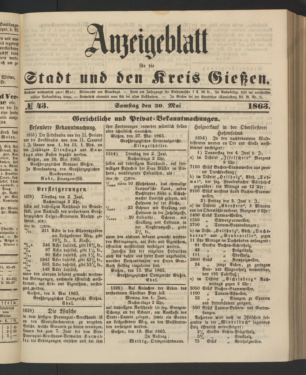Anzeigeblatt für die Provinzialhauptstadt Gießen. 1840-1867