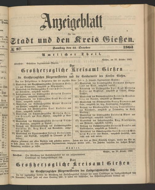 Anzeigeblatt für die Provinzialhauptstadt Gießen. 1840-1867