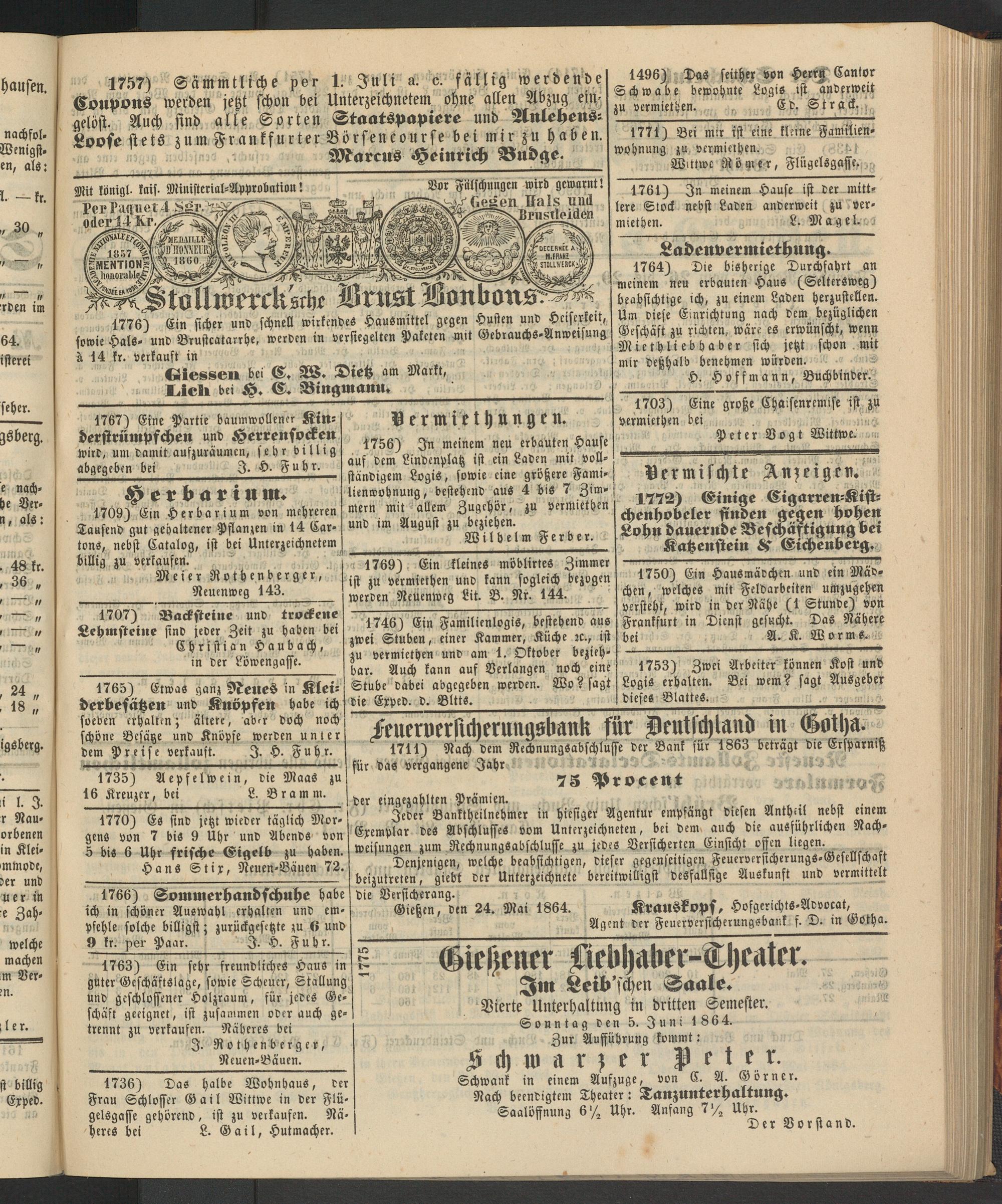 Anzeigeblatt für die Provinzialhauptstadt Gießen. 1840-1867