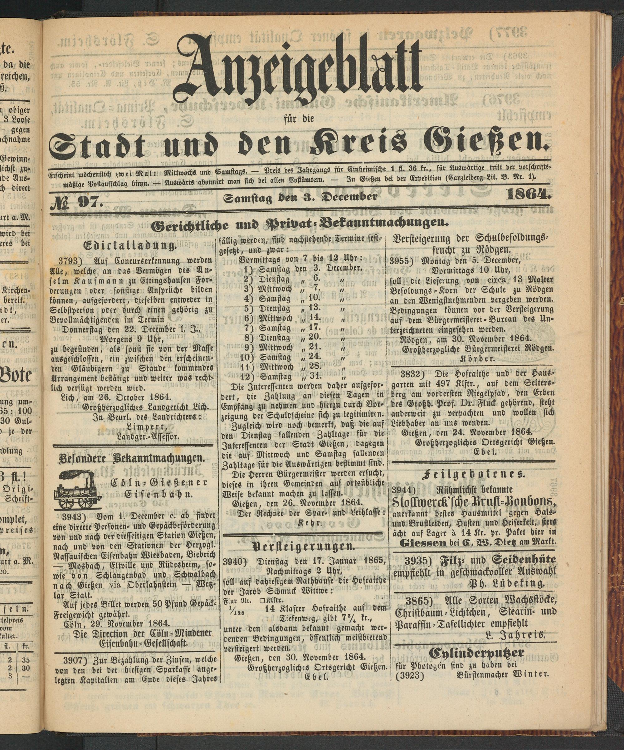 Anzeigeblatt für die Provinzialhauptstadt Gießen. 1840-1867