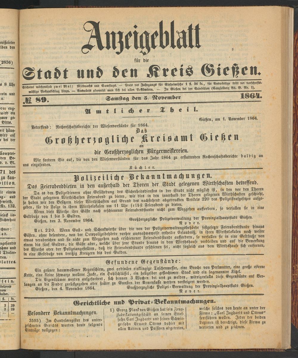 Anzeigeblatt für die Provinzialhauptstadt Gießen. 1840-1867