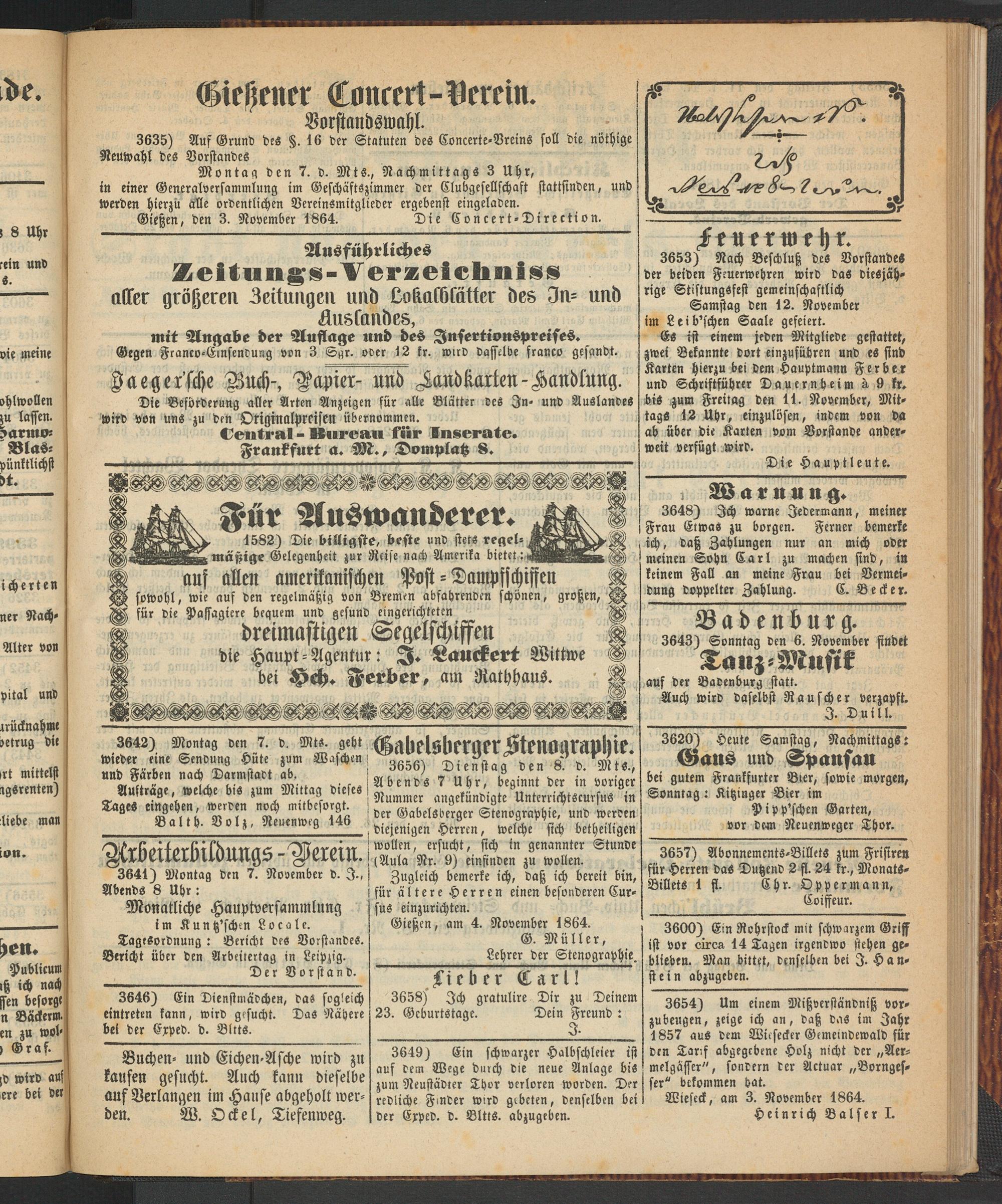 Anzeigeblatt für die Provinzialhauptstadt Gießen. 1840-1867
