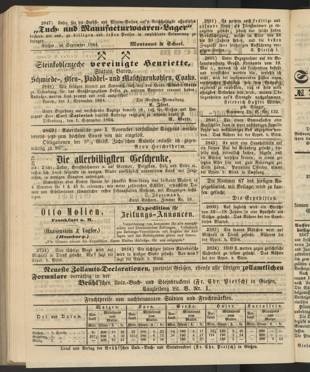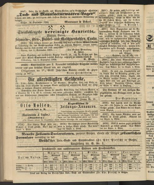 Anzeigeblatt für die Provinzialhauptstadt Gießen. 1840-1867