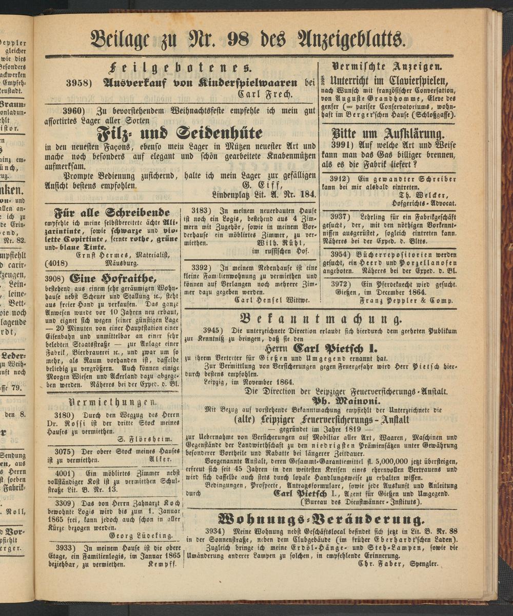 Anzeigeblatt für die Provinzialhauptstadt Gießen. 1840-1867
