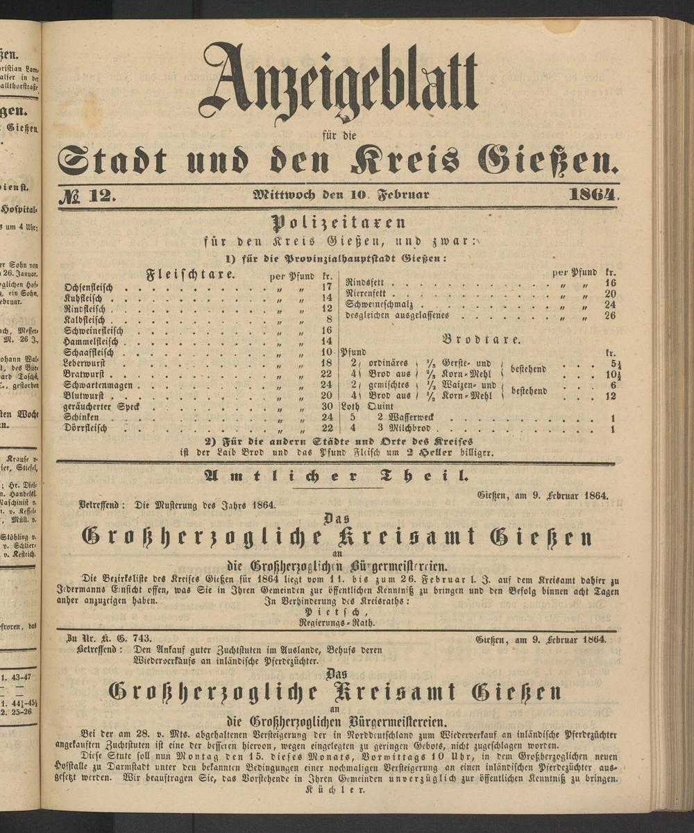 Anzeigeblatt für die Provinzialhauptstadt Gießen. 1840-1867