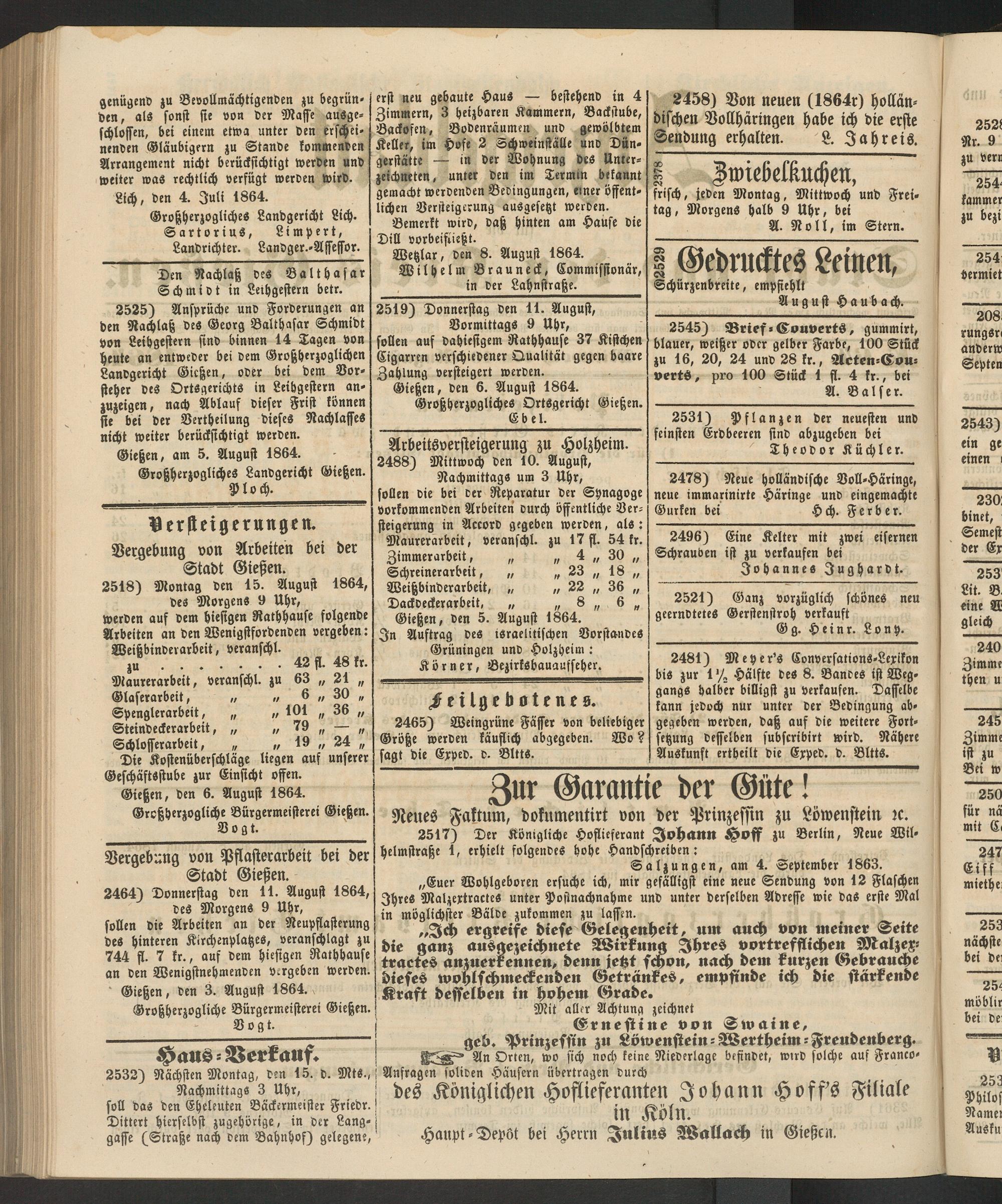 Anzeigeblatt für die Provinzialhauptstadt Gießen. 1840-1867