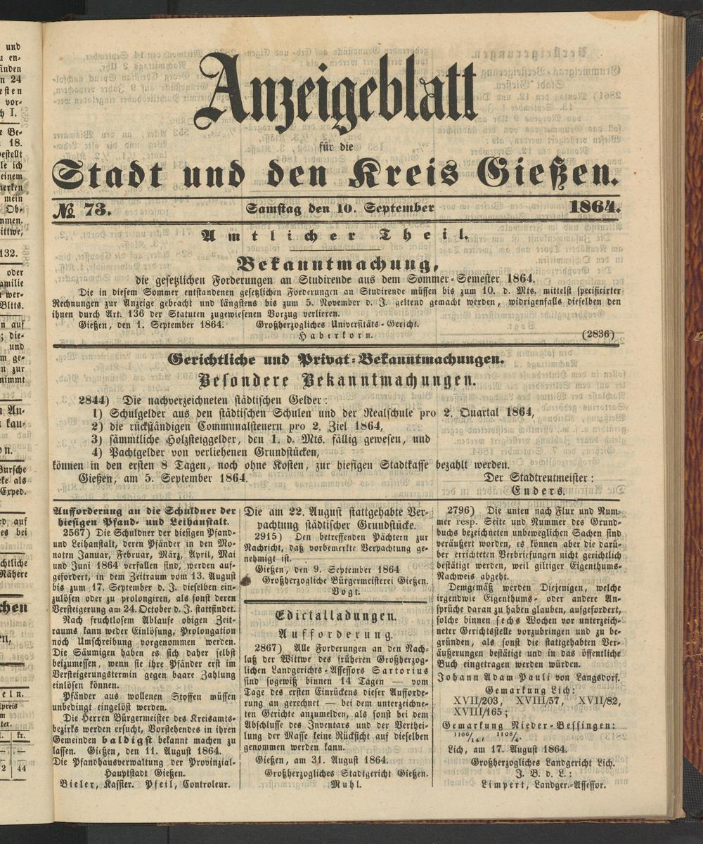 Anzeigeblatt für die Provinzialhauptstadt Gießen. 1840-1867