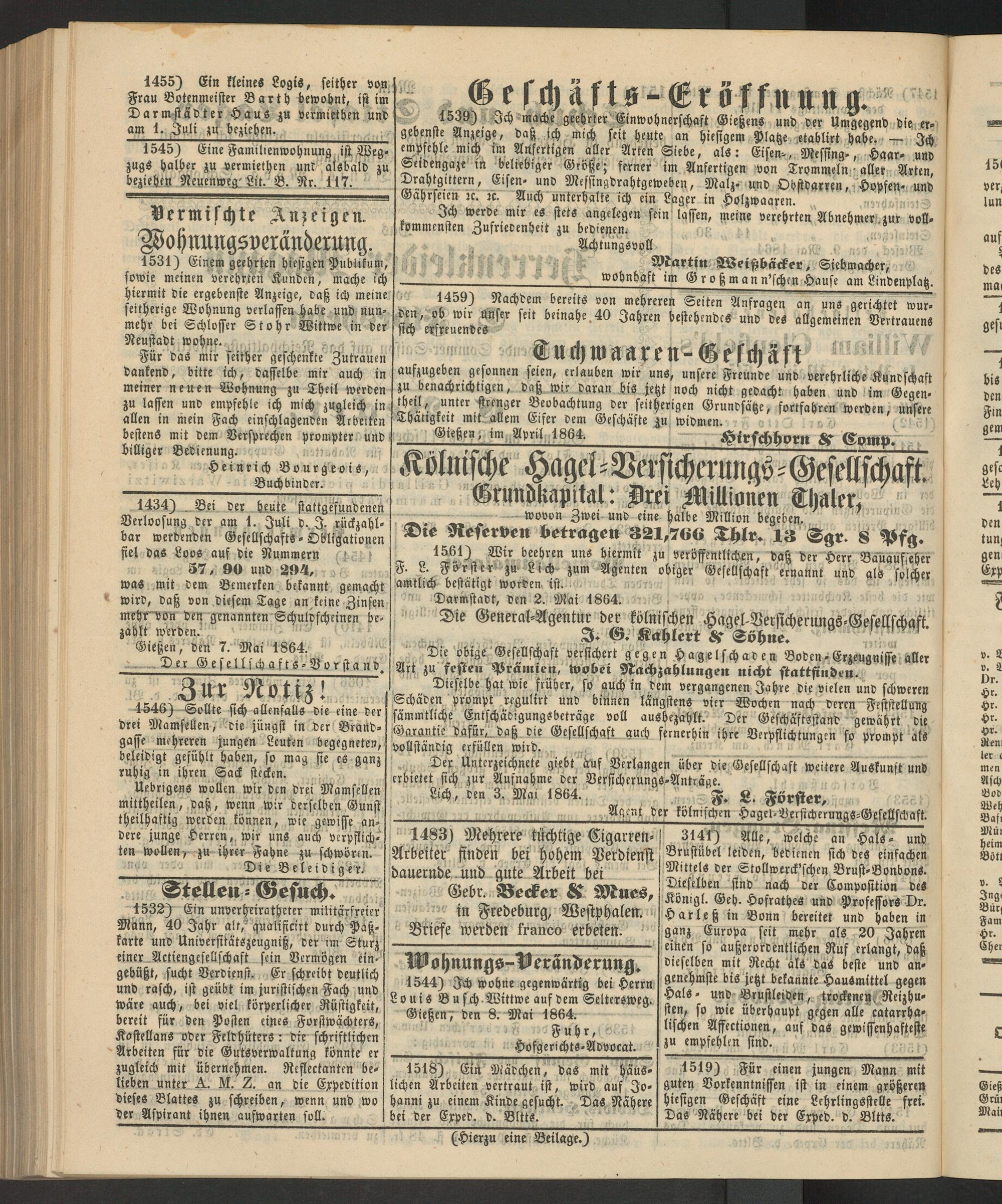 Anzeigeblatt für die Provinzialhauptstadt Gießen. 1840-1867