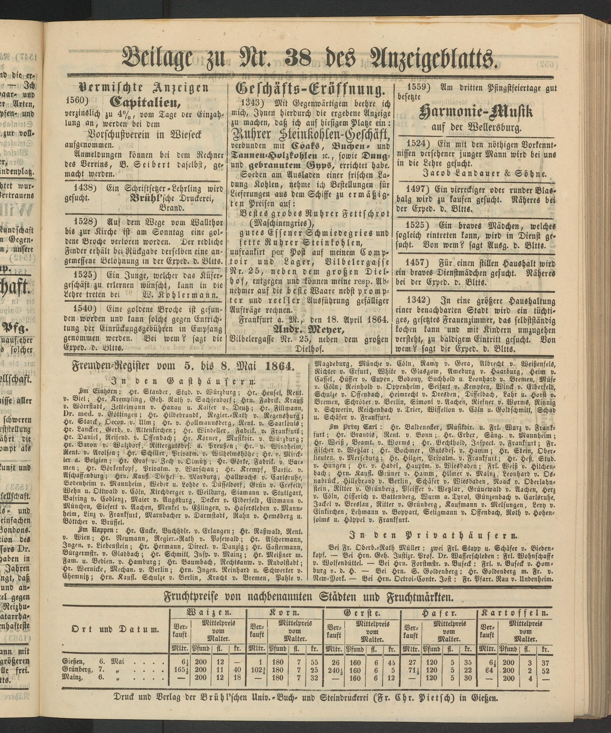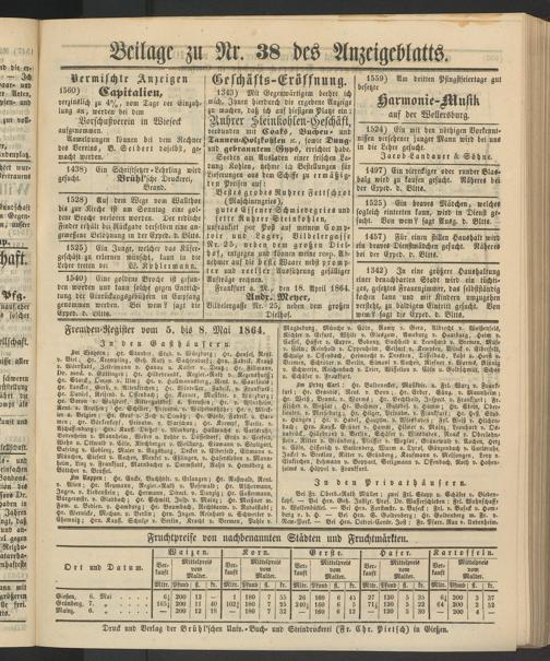 Anzeigeblatt für die Provinzialhauptstadt Gießen. 1840-1867
