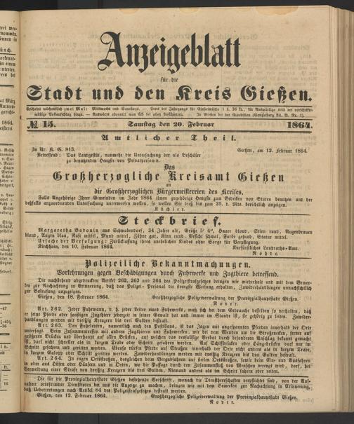 Anzeigeblatt für die Provinzialhauptstadt Gießen. 1840-1867