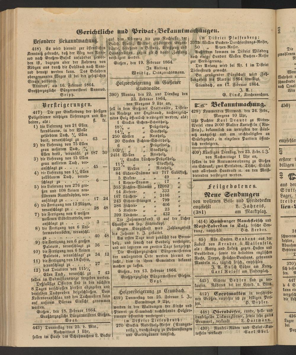 Anzeigeblatt für die Provinzialhauptstadt Gießen. 1840-1867