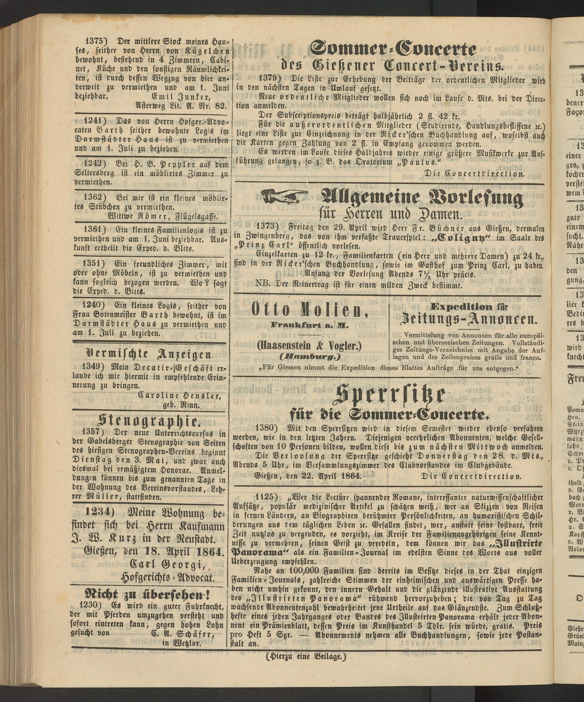 Anzeigeblatt für die Provinzialhauptstadt Gießen. 1840-1867