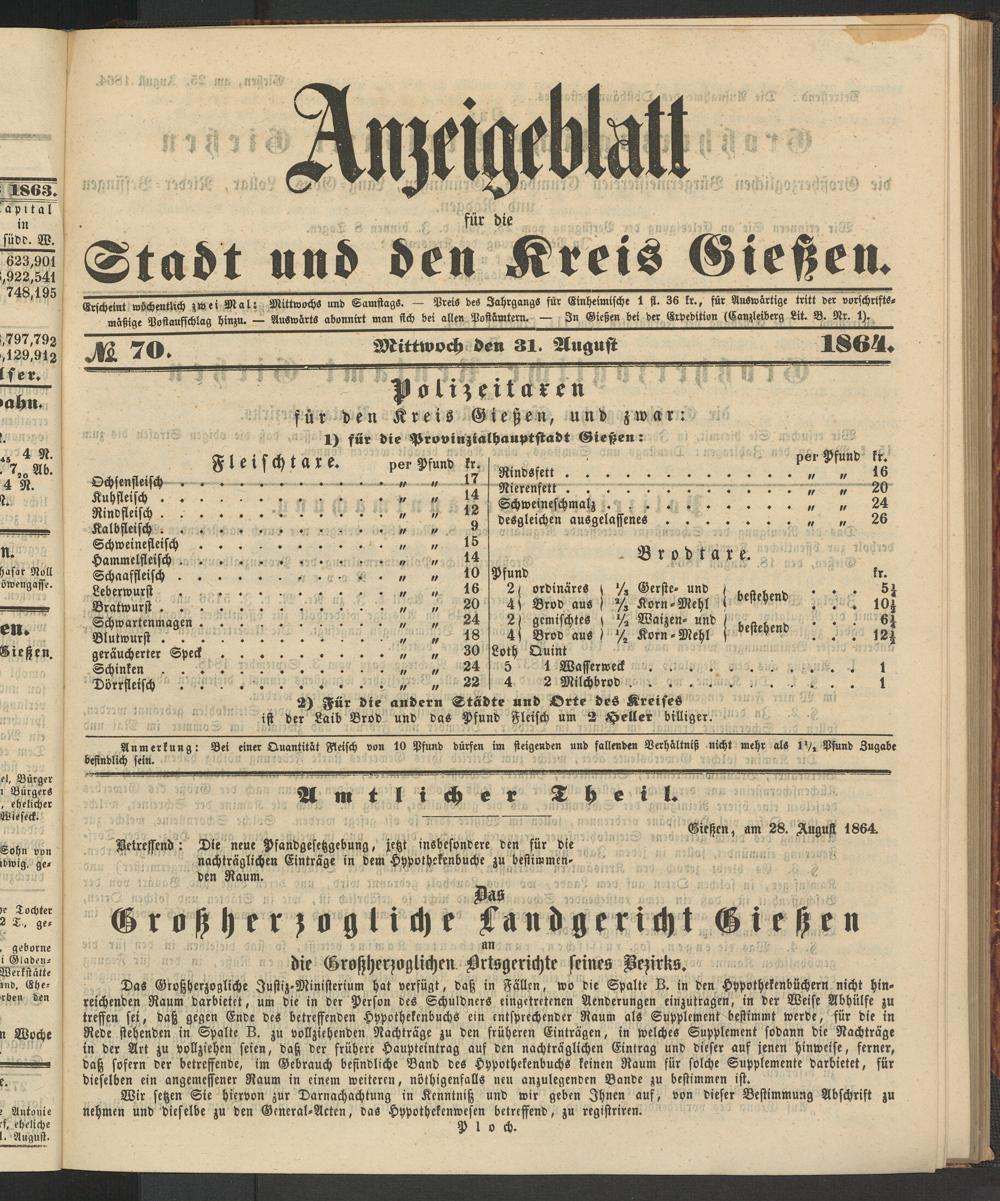 Anzeigeblatt für die Provinzialhauptstadt Gießen. 1840-1867