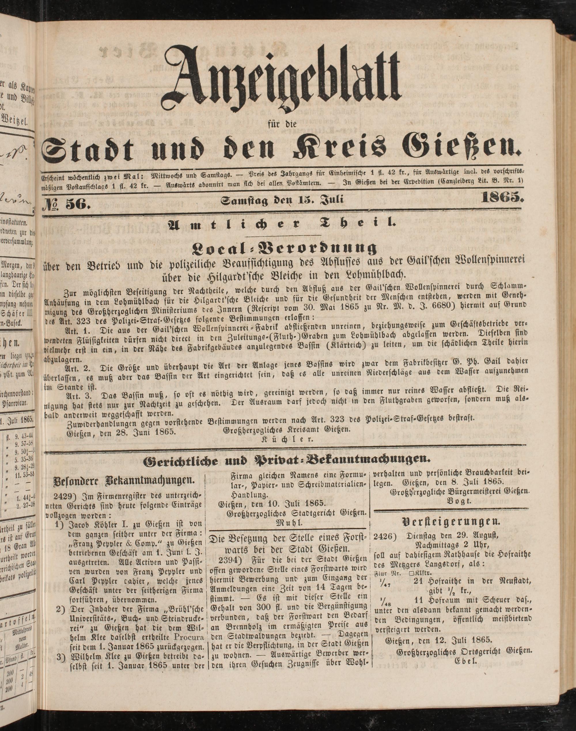 Anzeigeblatt für die Provinzialhauptstadt Gießen. 1840-1867