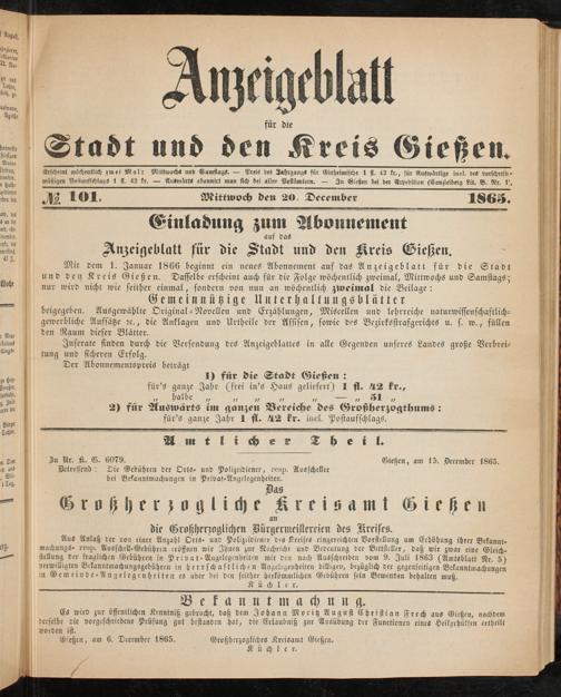 Anzeigeblatt für die Provinzialhauptstadt Gießen. 1840-1867