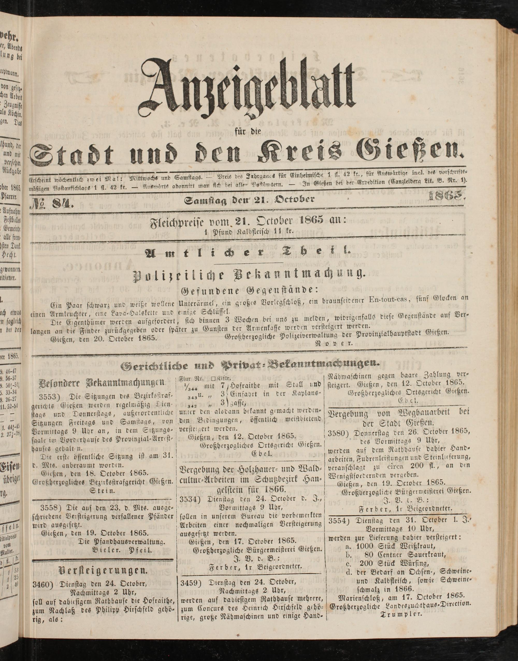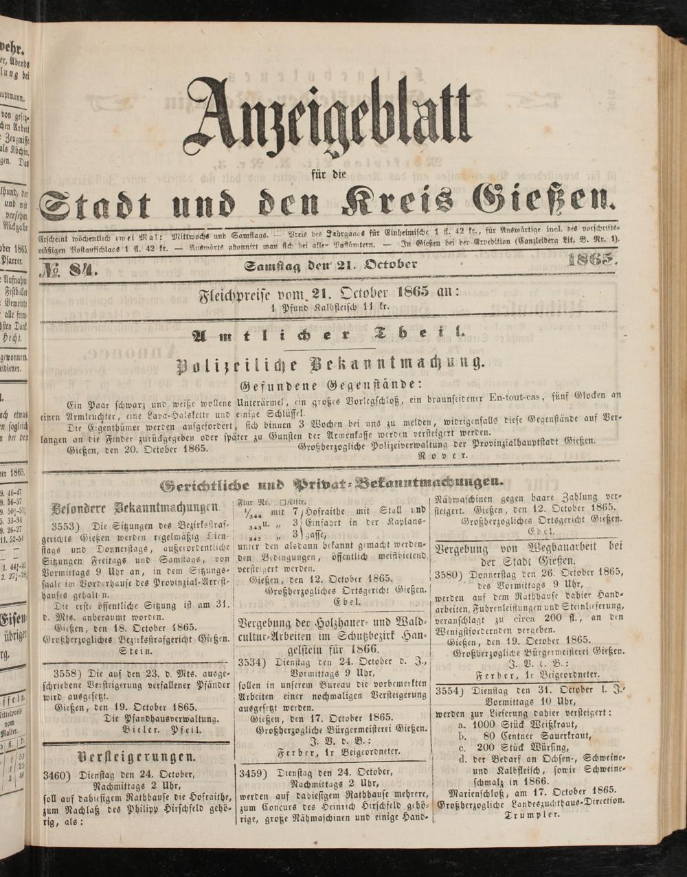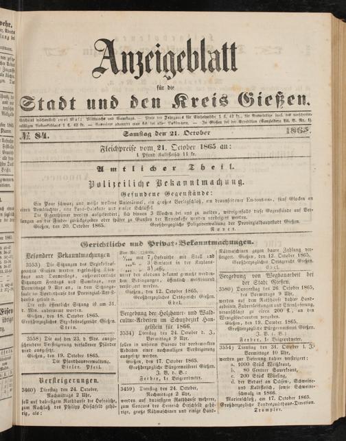 Anzeigeblatt für die Provinzialhauptstadt Gießen. 1840-1867