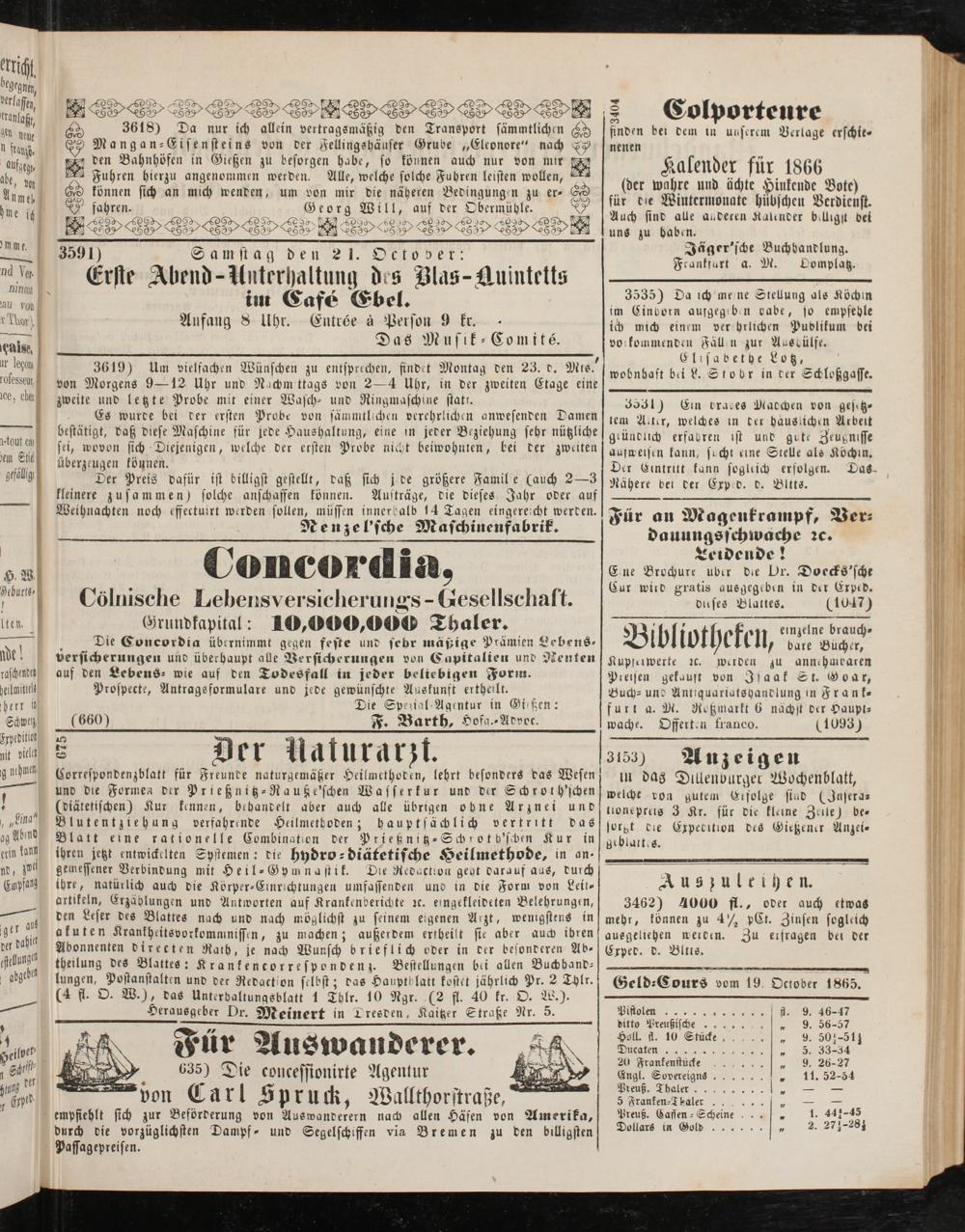 Anzeigeblatt für die Provinzialhauptstadt Gießen. 1840-1867