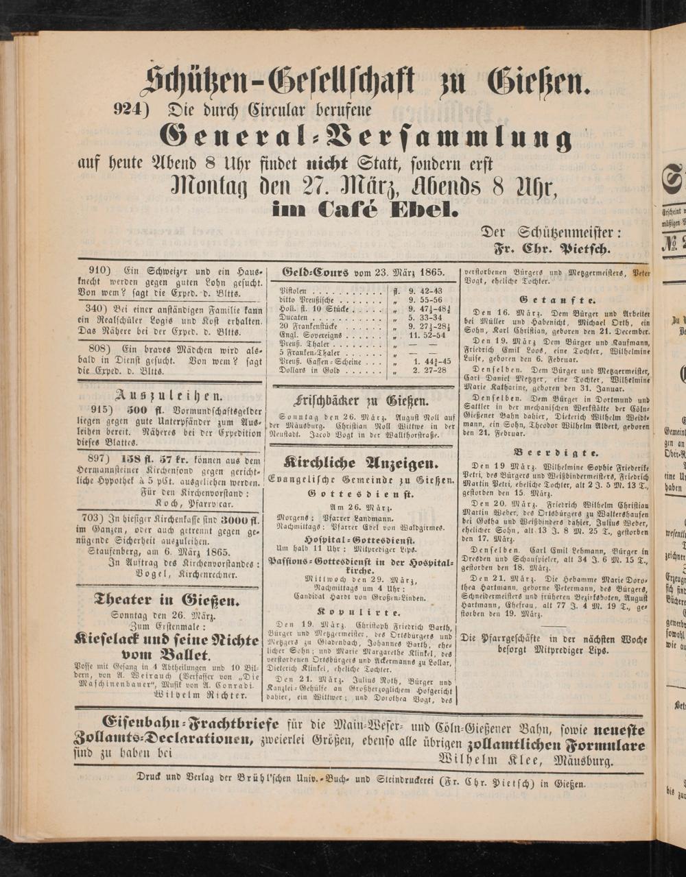 Anzeigeblatt für die Provinzialhauptstadt Gießen. 1840-1867