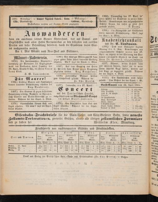 Anzeigeblatt für die Provinzialhauptstadt Gießen. 1840-1867