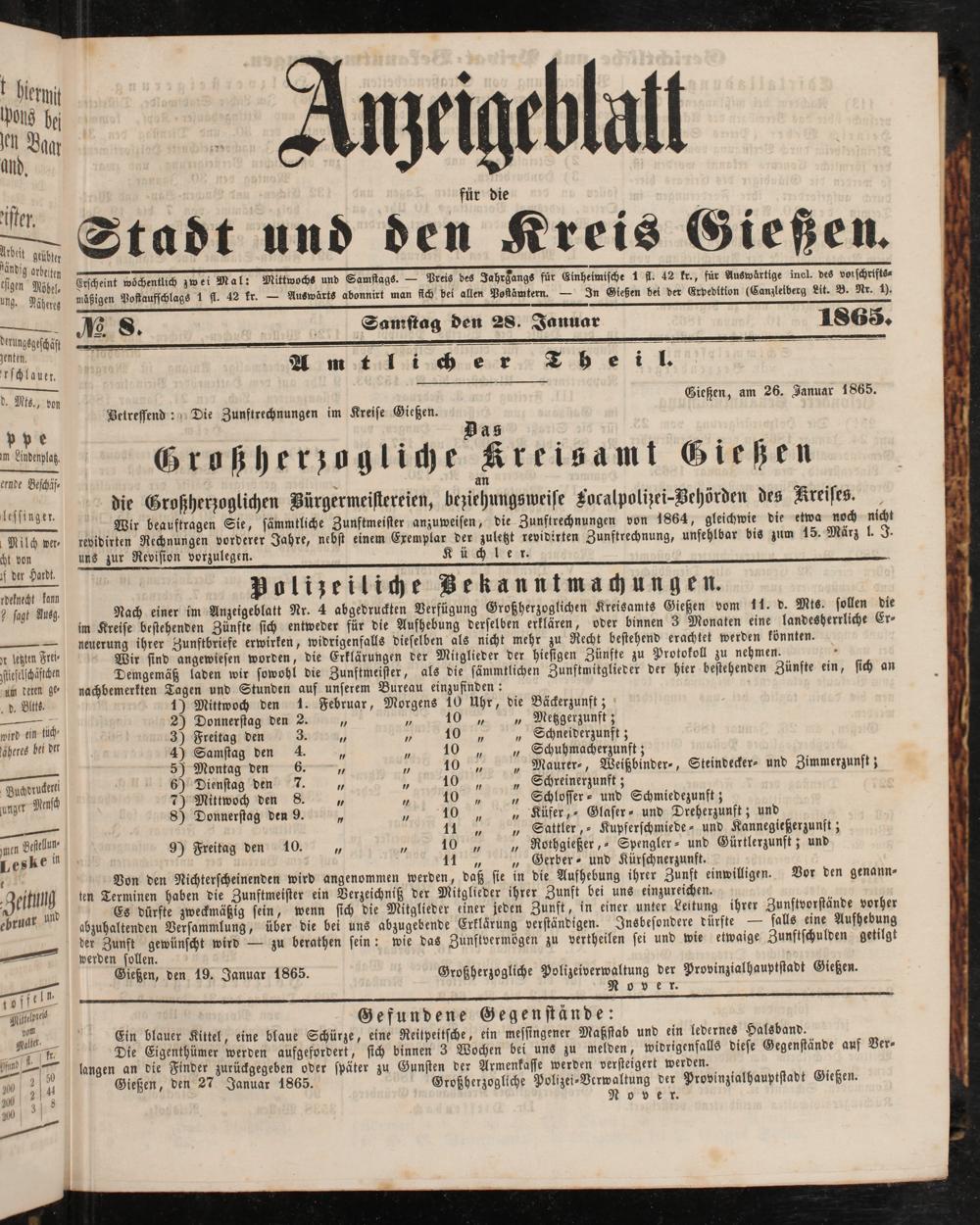 Anzeigeblatt für die Provinzialhauptstadt Gießen. 1840-1867