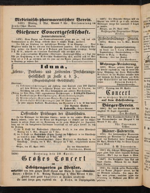 Anzeigeblatt für die Provinzialhauptstadt Gießen. 1840-1867