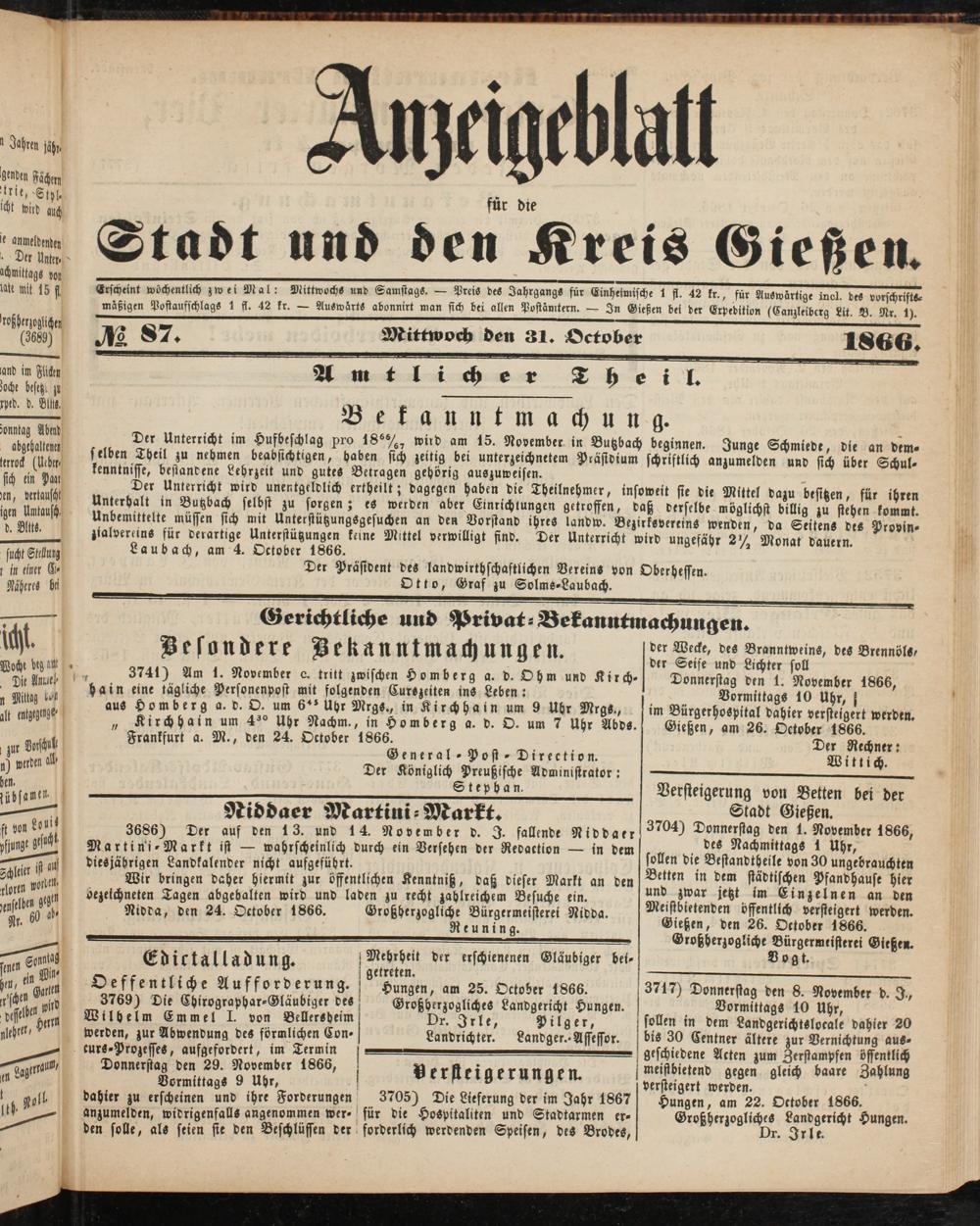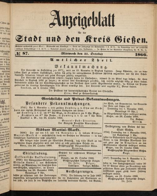 Anzeigeblatt für die Provinzialhauptstadt Gießen. 1840-1867